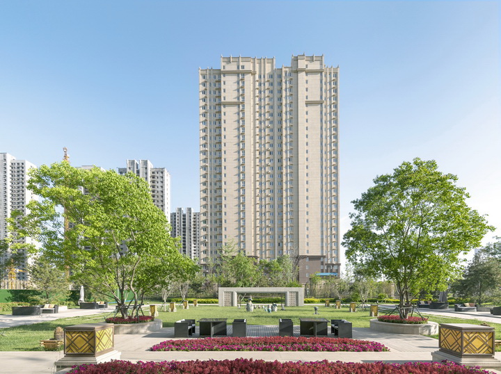 An ecological parking plaza is set up in the public green space on the west side to meet the parking demand, and the entrance is marked with a spiritual fortress to guide the flow of people, while a combination of point water feature and landscape wall is set up at the end to form a barricaded landscape to strengthen the sense of honorable experience.